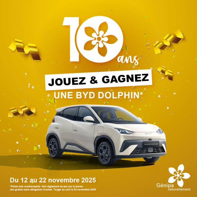 #Genipa #AnniversaireGenipa #JeuConcours #BYDDolphin #Martinique #Shopping #BonneChance